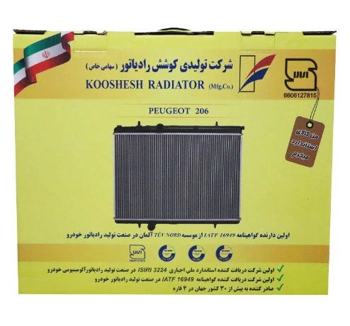 رادیاتور آب پژو 206 لوله 16 آلومینیومی کوشش