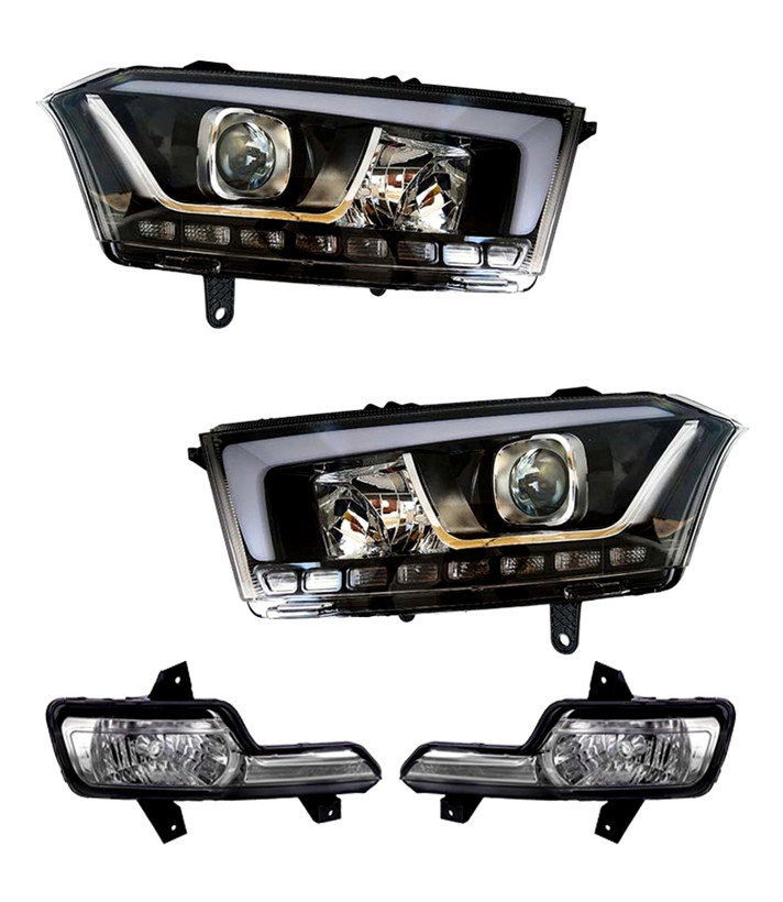 پکیج چراغ جلو جفت دنا+ (بالامپ و موتور و ال ای دی)مدرن به همراه مه شکن جلو بدون لامپ